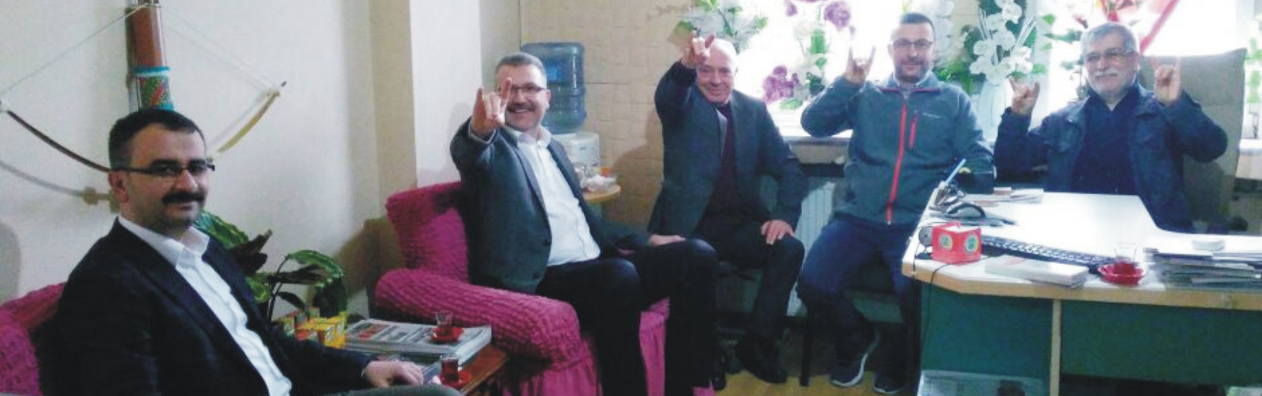 Başkan Özkan ve Tunalı, ziyaretin sonunda bozkurt işareti yaparak objektiflere poz verdi.