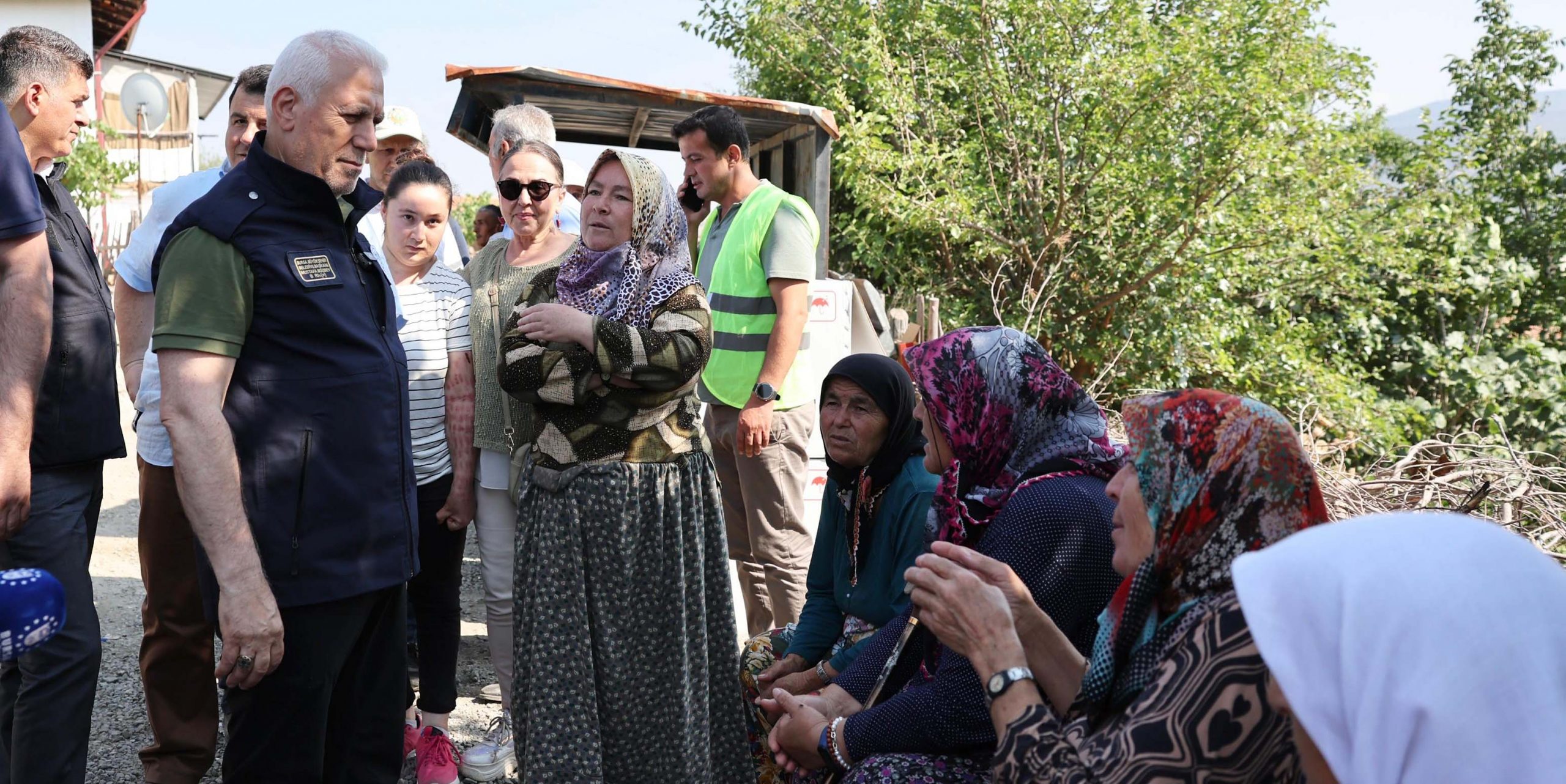Soğutma çalışmalarını yerinde gözlemleyerek ekiplerden bilgi alan Başkan Mustafa Bozbey, daha sonra Harmancık Belediye Başkanı Haşim Ali Arıkan ile birlikte yangından etkilenen Çamoğlu, Çakmak ve DUtluca köylerini ziyaret etti. Vatandaşlara geçmiş olsun dileklerini ileten Başkan Mustafa Bozbey, halkın ihtiyaç ve taleplerini birinci ağızdan dinledi.