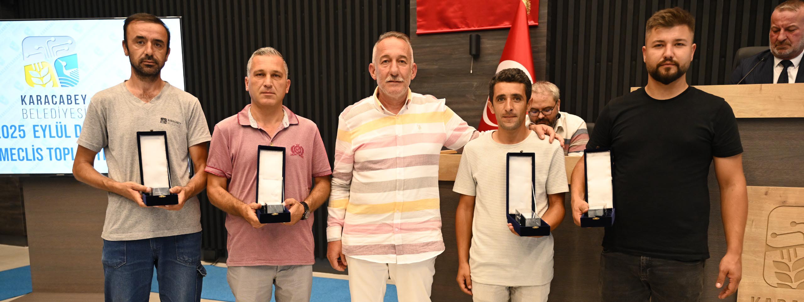 Meclis öncesinde her ay düzenli olarak gerçekleştirilen “Ayın Personeli” kapsamında, Çanakkale’deki büyük orman yangınına gönüllü olarak müdahale eden Fen İşleri Müdürlüğü personelleri Burak Yenilmez, Levent Kunduzcu, Aydın Kaya ve Furkan Bektaş plaket ile ödüllendirildi. Plaketleri, AK Parti Meclis Üyesi Faruk Türe tarafından takdim edilirken, Başkan Karabatı da özverili çalışmaları dolayısıyla personele teşekkür etti.
