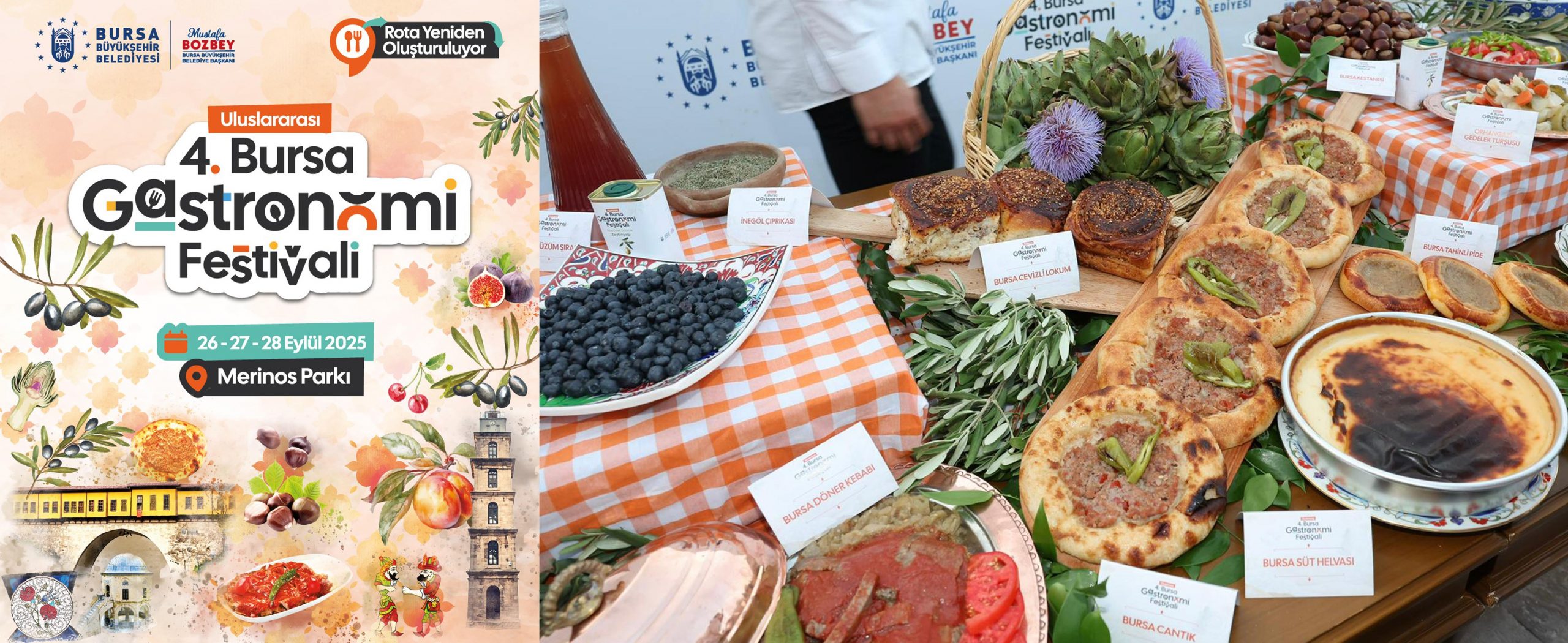 Bursa’nın sahip olduğu zengin mutfak kültürünü turizme kazandırmak ve dünyaya tanıtmak amacıyla düzenlenen ‘Gastronomi Festivali’nin dördüncüsü, 26 Eylül Cuma günü Saat 14.00’da Merinos Parkı B Kafe önünden kortej yürüyüşü, dostluk çorbası ikramı ve protokol töreniyle başlayarak 3 gün boyunca her yaştan lezzet tutkununu Merinos Parkı’nda bir araya getirecek. Bursa’ya özgü ürünlerin, tatların ve Bursa’ya özgü ürünlerle üretilen yenilikçi lezzetlerin öne çıkacağı festivalde asırlık lezzetlerin sunum ve tadım etkinlikleri yer alacak.