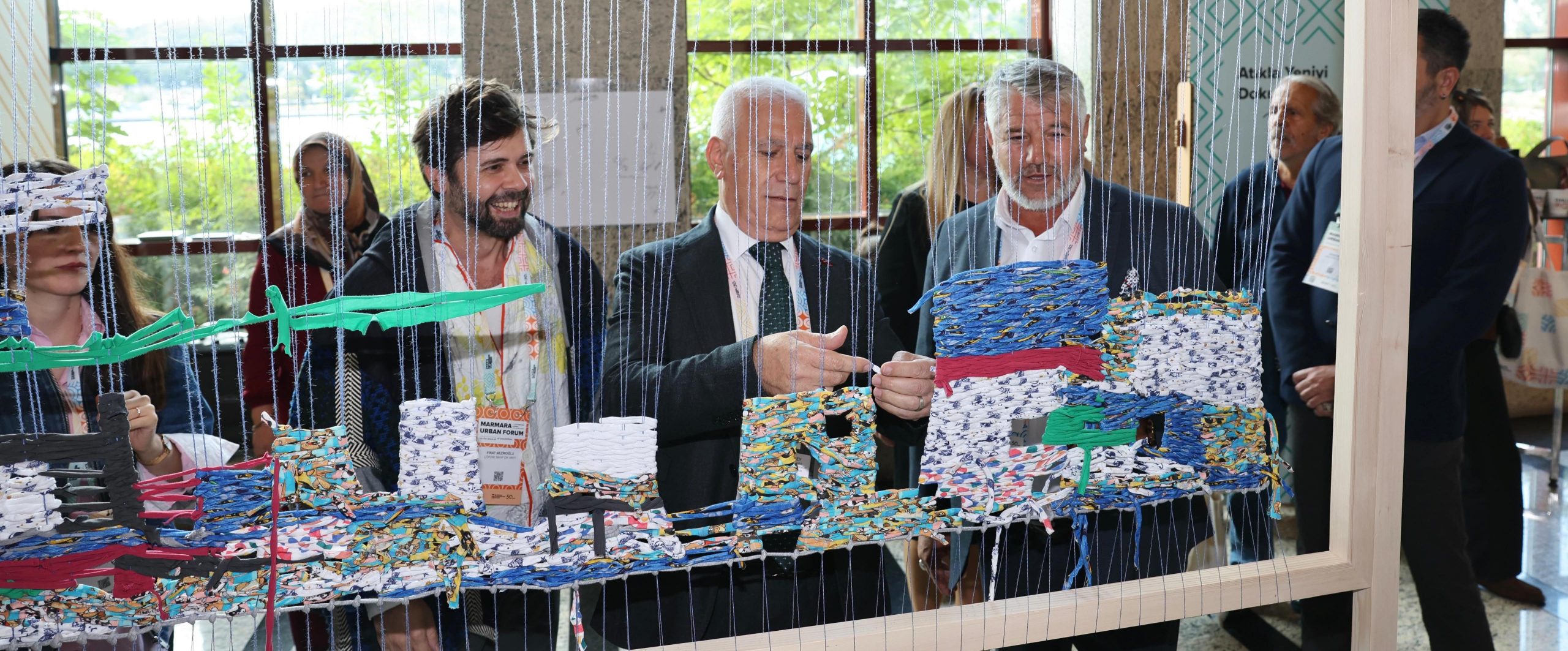 Marmara Urban Forum kapsamında kurulan atölyelerde, atık kumaşların yeniden hayat bulduğu dokuma çalışmalarına da katılan Başkan Mustafa Bozbey, kendi elleriyle kumaşları dokuyarak atölyeye katkı sundu. Yapılan dokumanın geri dönüşümün ve sürdürülebilir yaşamın sembolü olduğunu ifade eden Başkan Bozbey, “Her atık, doğru yöntemlerle değerlendirildiğinde geleceğe umut oluyor. Daha temiz, daha yeşil ve daha yaşanabilir kentler için geri dönüşümü hayatın her alanına yaymak hepimizin sorumluluğu” diye konuştu.
